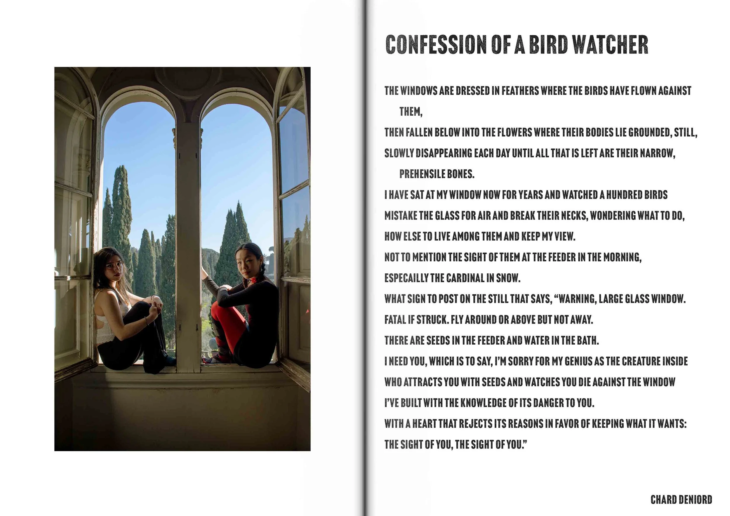 Petals & Thread is a fashion zine that draws attention to the overwhelming unsustainable and environmentally hazardous practices that plague the fashion industry. Fast fashion consumes contemporary wardrobes. There is little focus on the longevity of fabric, rather producing items to keep up with the rapidly developing fashion trends. Hasty production harbors unsafe environmental practices and toxic work conditions, and degrades the quality of the final garment snatched up by the unaware customer. My magazine uses poems about environmental degradation to draw parallels between the illustrious fashion industry and the decaying world.